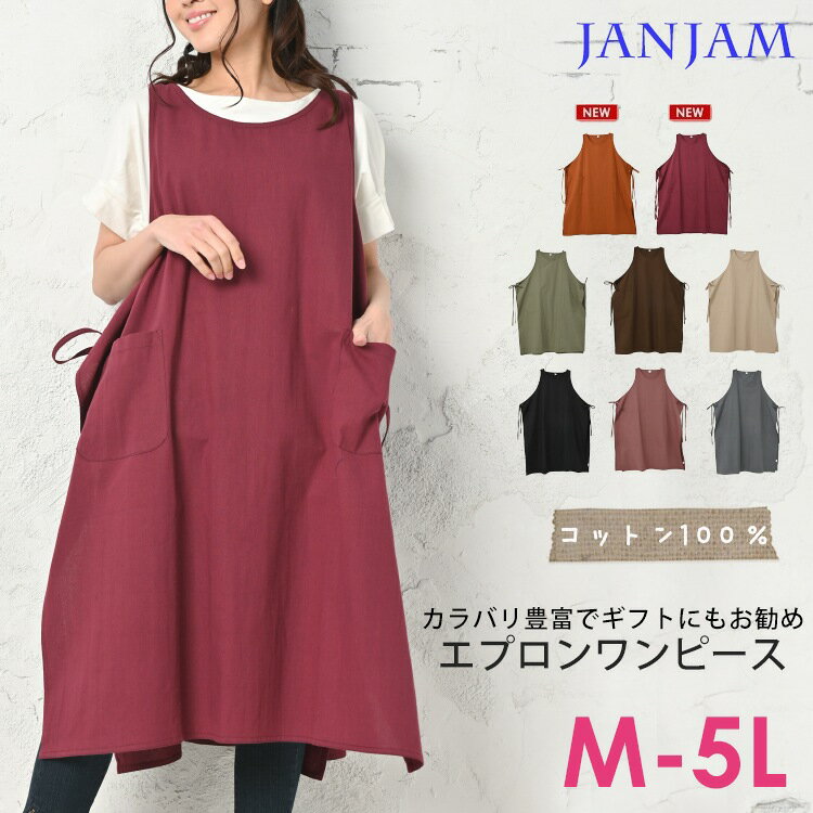 メール便対応 大きいサイズ レディース エプロンワンピース ノースリーブ ミドル丈 ポケット エプロンドレス cotton100 M-5L ゆったりサイズ ぽっちゃり女子 プラスサイズ