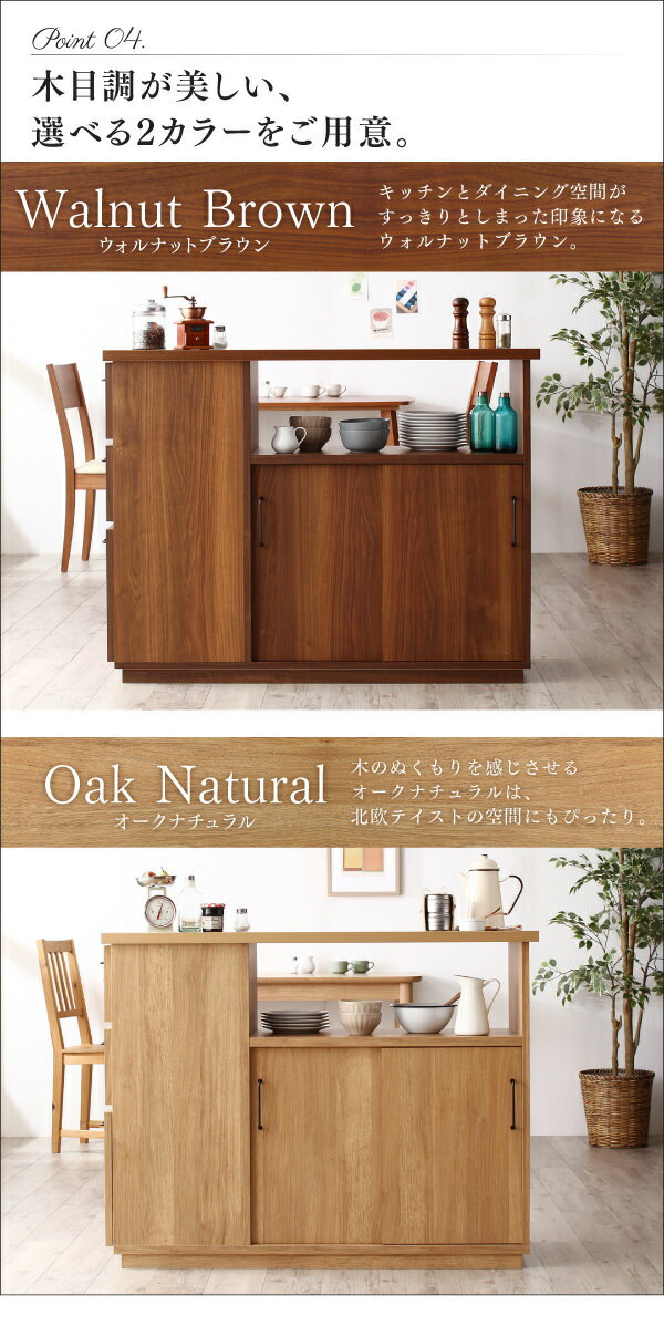 【100円OFFクーポン発行】 日本製完成品両面から収納できる間仕切りキッチンカウンター Cafeterie カフェテリエ 家具 インテリア キッチン収納 スッキリ 整理整頓 高級感 木目 美しい 食器 調理器具 引き戸スぺース 食料品 小物 ウォルナットブラウン オークナチュラル